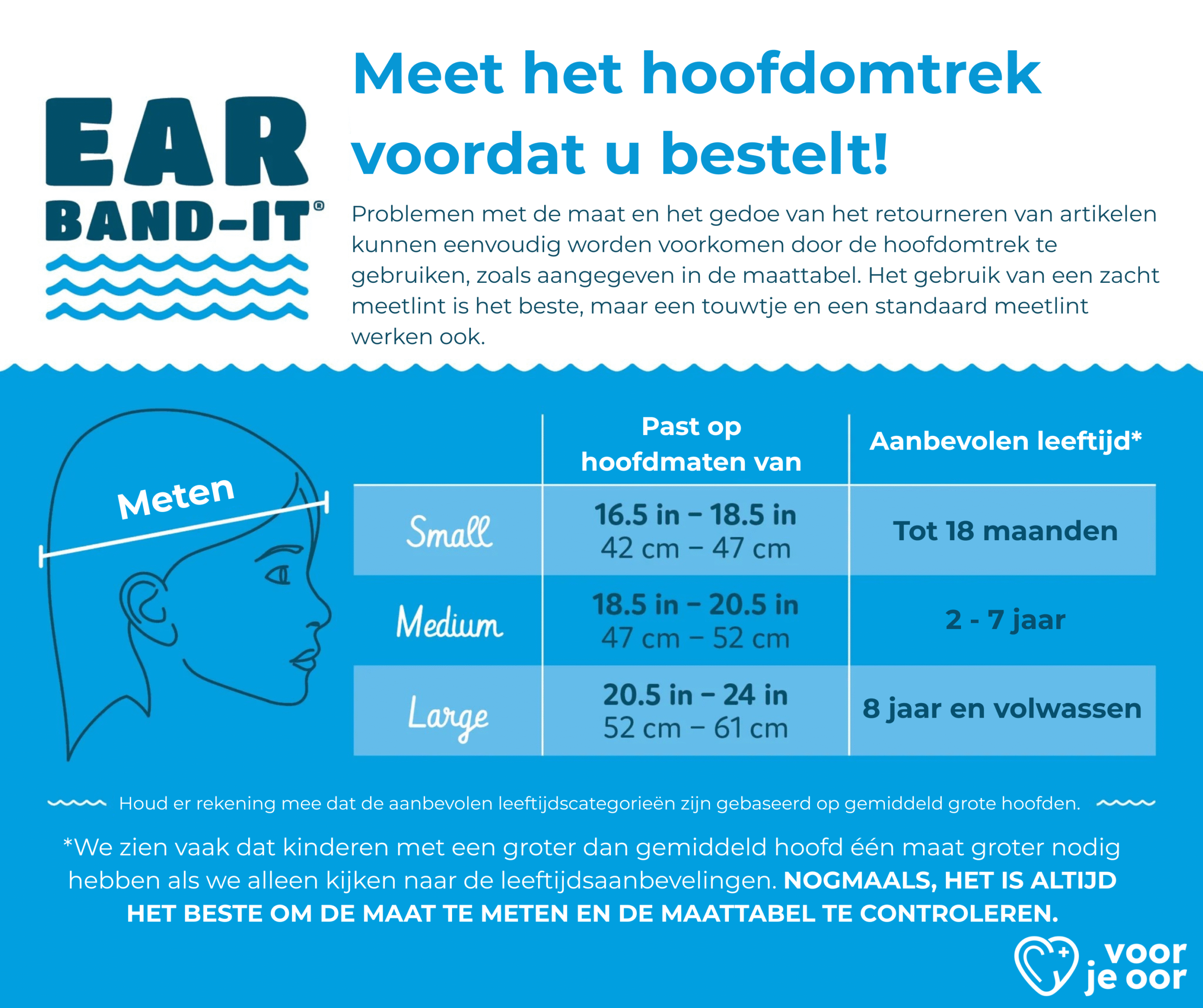 Om te weten welke maat jou het beste past verwijzen we je door naar de bijsluiter: https://voorjeoor.nl/wp-content/uploads/2023/11/Bijsluiter-Ear-Band-Its-en-Putty-Buddies.pdf